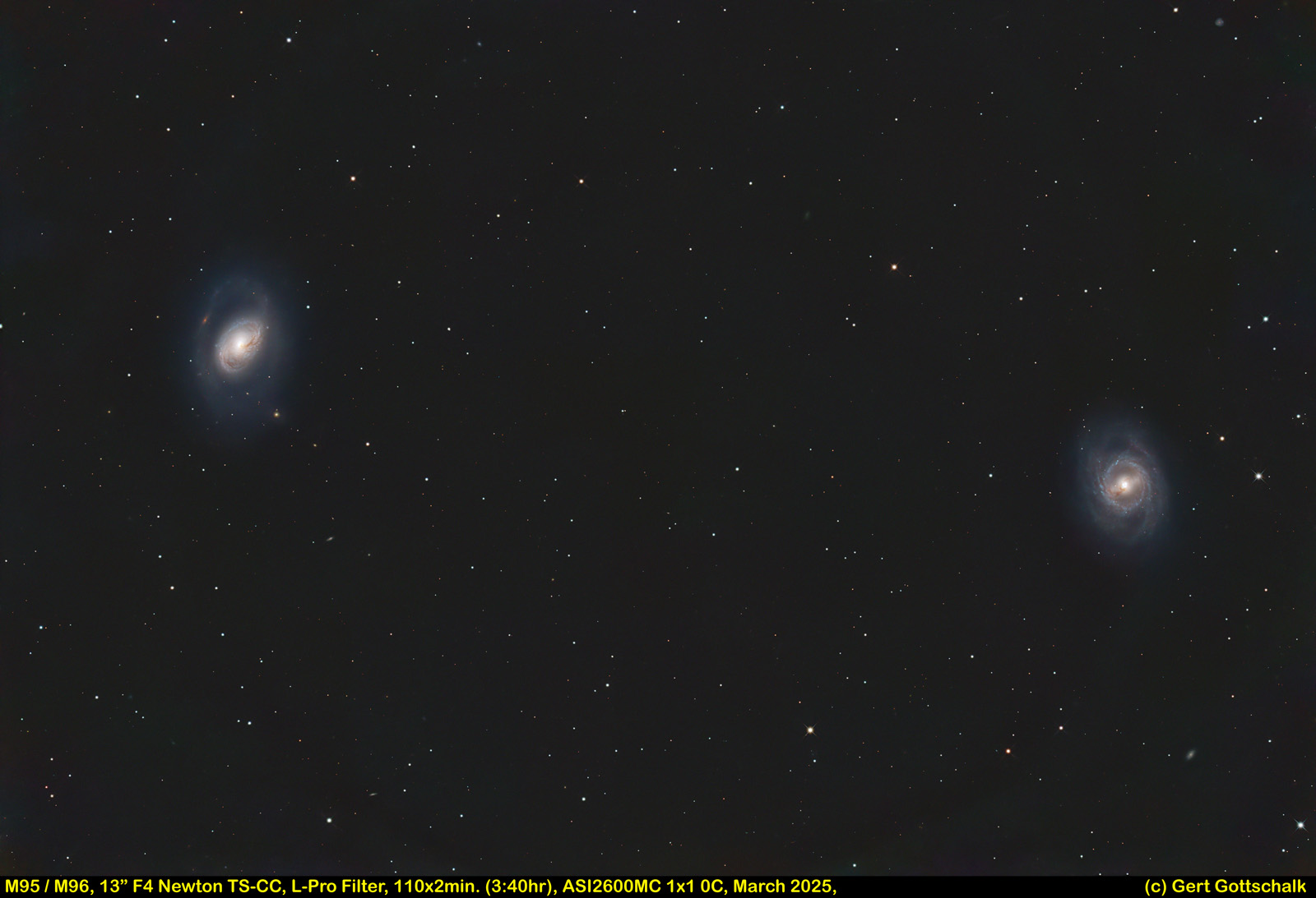 Exposures from urban location (Bortle 8). Processing: Calibration, Stack, RGB re-align, gradient removal, deconvolution, stretch, noise removal, final adjust.
